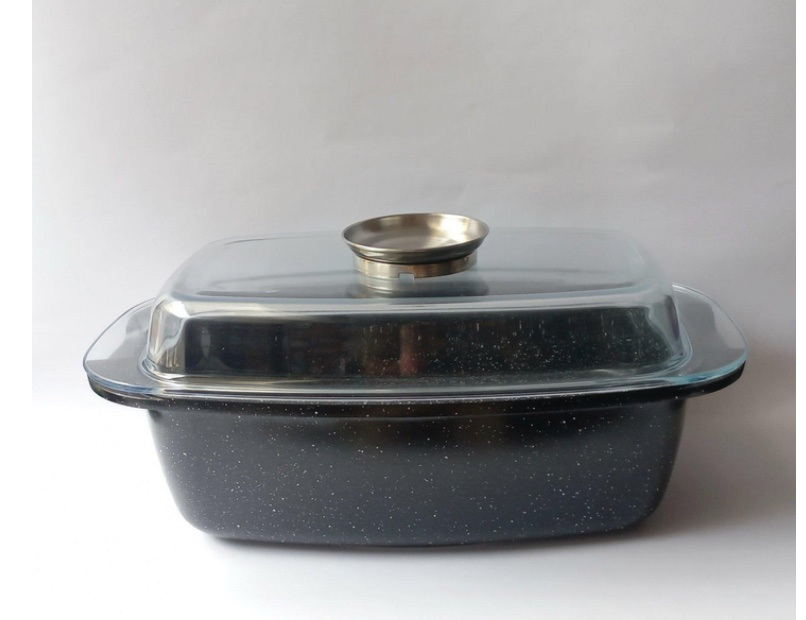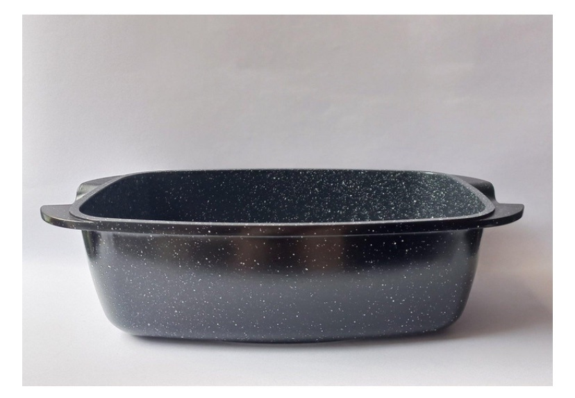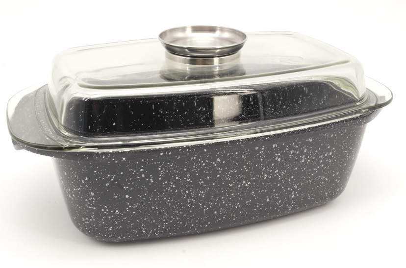 Черный цвет гусятницы с белыми вкраплениями делает её стильным и современным аксессуаром на кухне, который будет радовать глаз и добавлять уют вашему интерьеру.