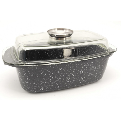 Литые алюминиевые ручки обеспечивают удобное перемещение гусятницы. Крышка из термостойкого закаленного стекла с ручкой из нержавеющей стали позволяет контролировать процесс приготовления без необходимости открывать гусятницу.