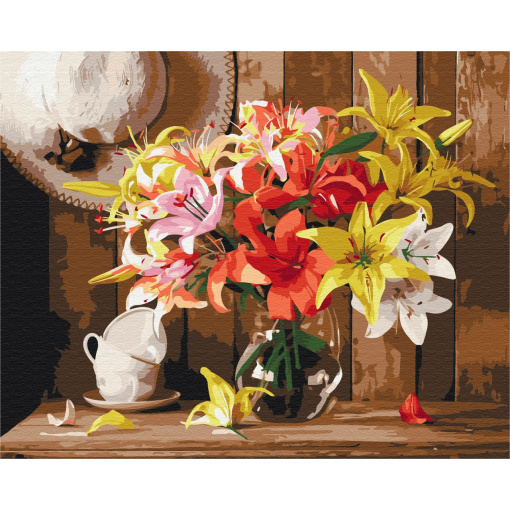 Картина за номерами BrushMe "Фарбовий букет лілій" 40х50см BS52767
