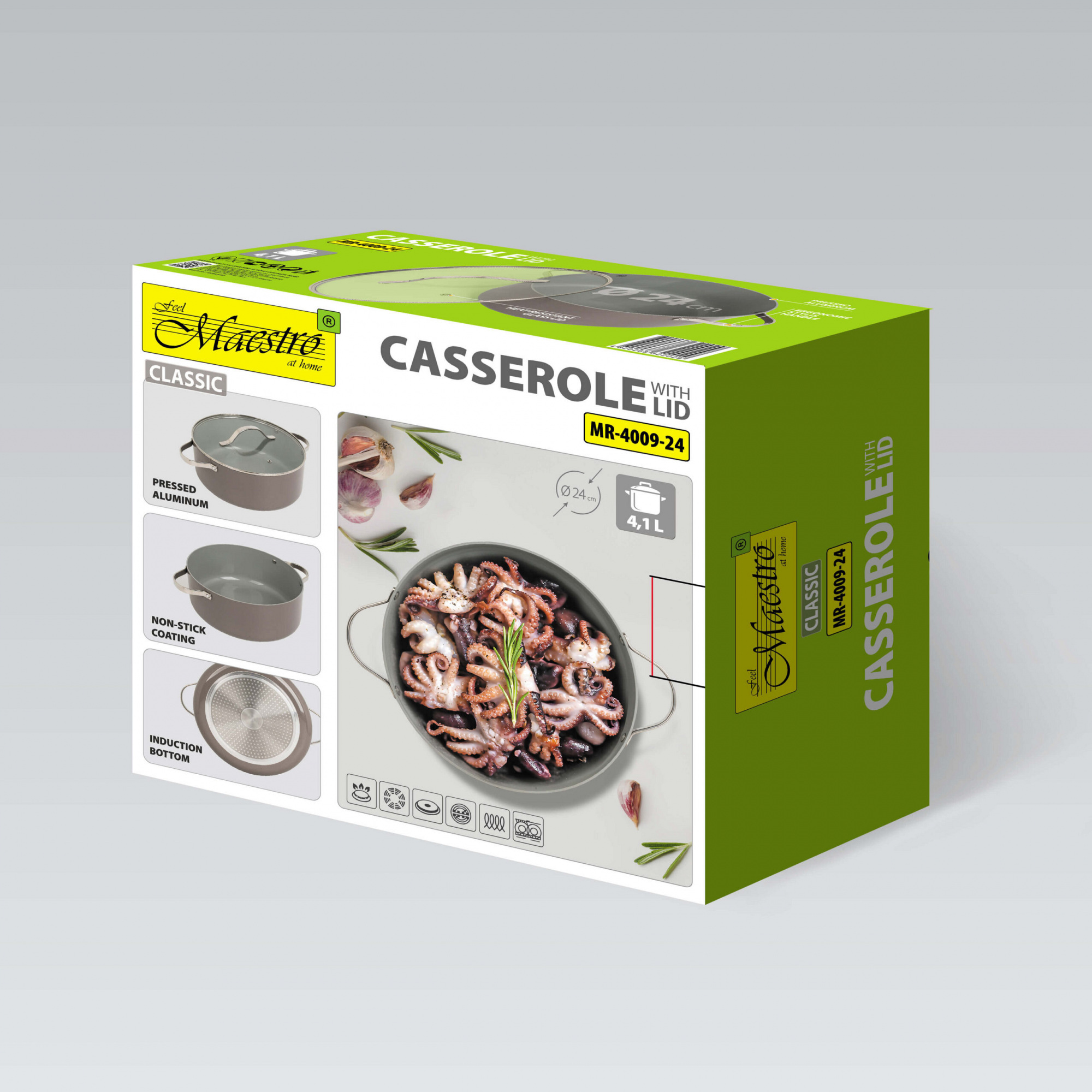 Подробные характеристики Кастрюля Maestro MR-4009-24 24 см 4,1 л Серый (102398290).