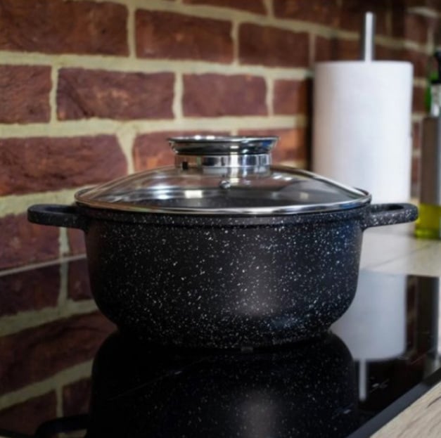 Уникальная конструкция дна обеспечивает отличную теплопроводность и обеспечивает равномерную температуру на всей поверхности Казан легко моется в посудомоечной машине.