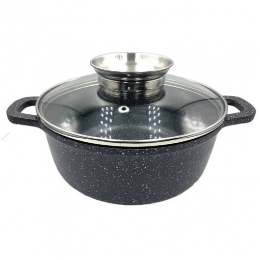 Казан круглый на 7 литров (28см) со стеклянной крышкой, антипригарное мраморное покрытие Unique UN-5277