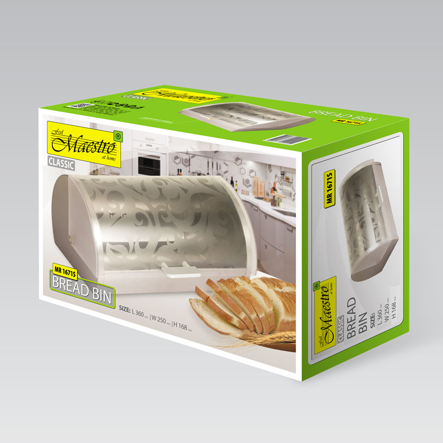 Подробные характеристики Хлібниця Maestro 37х22х17 см Серебристо-белый MR-1671S.