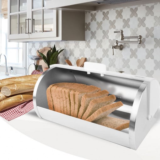 Хлібниці від Maestro відрізняються дизайном, матеріалами та конфігурацією, але поєднує їх бездоганну якість, ергономічні форми та унікальний стиль. У виготовленні хлібниць використовуються тільки екологічно чисті матеріали, такі як нержавіюча сталь, акрил. Конструкція кожної з хлібниць розроблена з метою максимально довго залишати ваш хліб свіжим та оберігати його від вологи, яка на кухні завжди у достатній кількості. Матеріал основи: метал Матеріал кришки: пластик Розмір: 37*22*17 см
