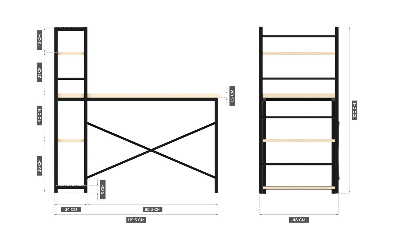 • Просторная столешница и 3 полки