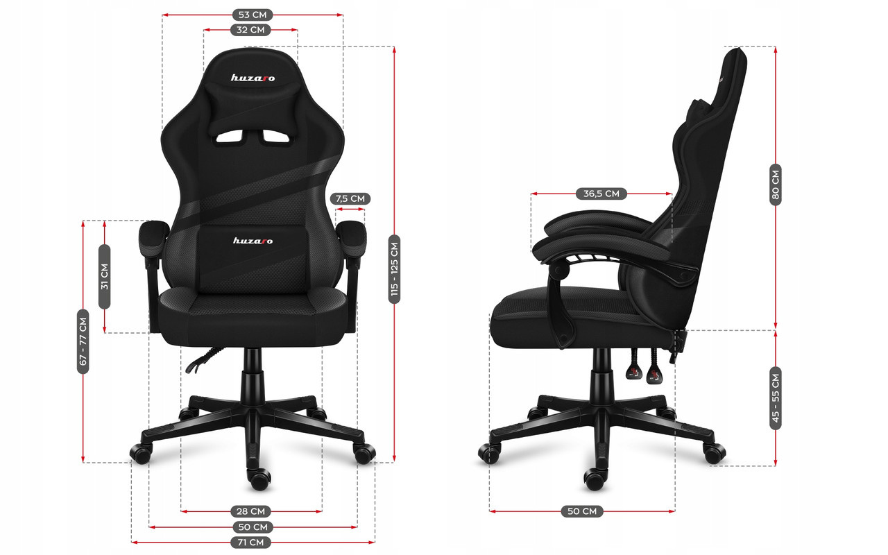 Huzaro Force 4.4 - НАСТОЯЩИЙ ИГРОВЫЙ КОМФОРТ Force 4.4 оснащен всем, на что стоит обратить внимание при покупке игрового кресла – от удобного эргономичного дизайна до прочных материалов и интересного дизайна. Минималистичный, спортивный дизайн придает любому интерьеру игровой характер – независимо от того, сколько свободного места в вашем распоряжении, вы можете создать фантастическое место для игры где угодно. Особая конструкция в сочетании с дышащим материалом делает игровые кресла идеальными для игры в жаркие дни – они рассеивают тепло и обеспечивают максимальный тепловой комфорт. Вставки из экокожи подчеркивают спортивный характер кресла, и при этом легко чистятся. Пена Thermo-Elastic, идеально подобранная к конструкции кресла, максимально крепкая – сохраняет форму и не деформируется во время сидения. Наклон спинки позволяет принять эргономичное положение во время игры или работы за компьютером. ОСОБЕННЫЕ ХАРАКТЕРИСТИКИ: • Удобное игровое кресло Force 4.4 • Регулируемая спинка и функция качания Softlex • Прочное и мягкое сиденье по технологии Thermo-Elastic • Удобные подушки для поддержки ключевых частей позвоночника • Особая конструкция, позволяющая принять эргономичное положение • Мягкие удобные подлокотники • Прочный, стойкий к истиранию материал покрытия • Надежный привод и резино-полиуретановые колеса, не царапающие • Игровой дизайн кресла прекрасно смотрится в объективе стримерной камеры. • Максимальная нагрузка: 130 кг.