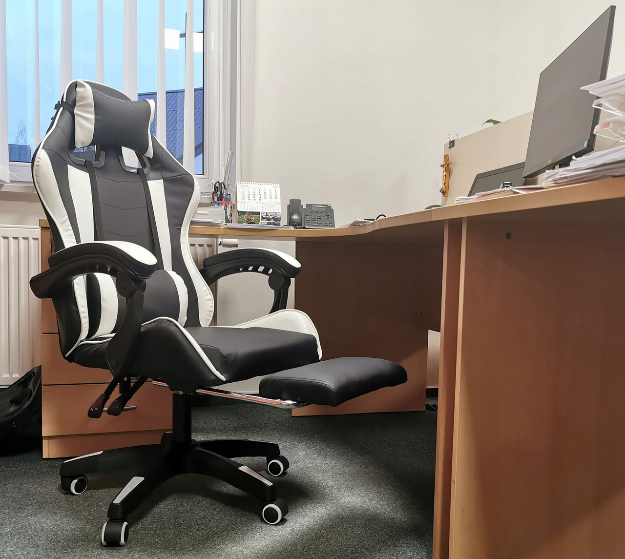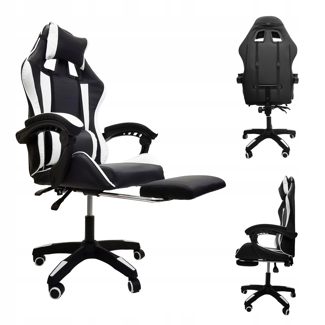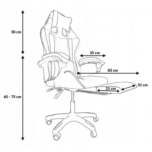Современное эргономичное игровое кресло является незаменимым элементом комнаты каждого геймера. Благодаря характерному контурному дизайну, кресло обеспечивает полный комфорт во время длительных игр, обучения или работы. Использование экологичной кожи и мягкого, губчатого наполнителя обеспечивает непревзойденный комфорт кресла, а дополнительные подушки позволяют поддерживать правильную осанку во время игры. Благодаря системе плавных рычагов вы можете регулировать как высоту, так и угол наклона спинки, что позволяет регулировать ее в соответствии с вашими предпочтениями. ОСНОВНЫЕ ХАРАКТЕРИСТИКИ: Внимание к деталям Гладкая, регулируемая спинка Современный, дизайнерский вид Две эргономичные подушки Вращение на 360° Комфортная и рельефная форма, помогающая поддерживать здоровое положение Колеса для удобного перемещения Массажер в нижней подушке Сменная подножка. ФУНКЦИЯ МАССАЖА В ПОДУШКЕ – специально разработанная подушка с массажером (USB) обеспечивает облегчение и расслабление во время длительных сеансов. Не позволяйте боли в спине мешать вам играть! СПЕЦИФИКАЦИЯ: Материал: экокожа, пенополиэтилен, металл Количество подушек: 2 Подставка для ног: да Регулировка высоты: есть Регулировка спинки: есть Макс. погрузка: 120 кг. Размер спинки: 55 х 75 см. Размер сиденья: 51 х 47 см. Высота подлокотника: 26 см Расстояние между подлокотниками: 64 см. Длина подлокотника: 35 см. Расстояние до подлокотника: 47 см. Высота сиденья: 40-50 см. Размеры подножки: 31 х 21 см. Высота: 114 – 123 см.