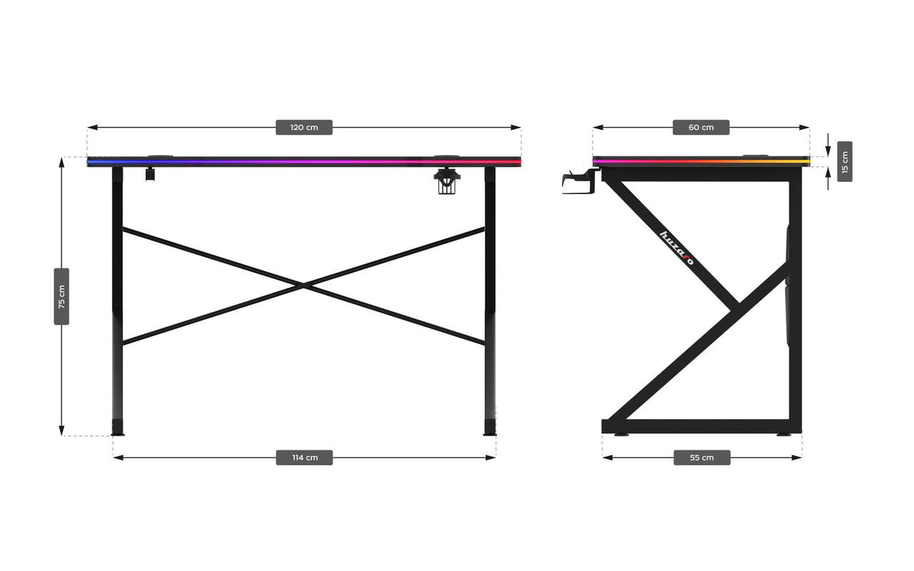 Подробные характеристики Компьютерный стол huzaro Hero 1.7 RGB 120x60x77 см Black.