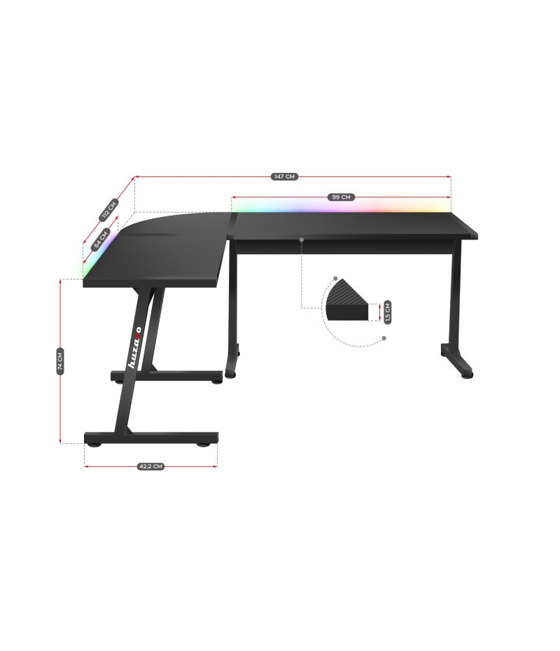 Подробные характеристики Компьютерный стол huzaro Hero 6.0 RGB LED 147x112x74 см Black.
