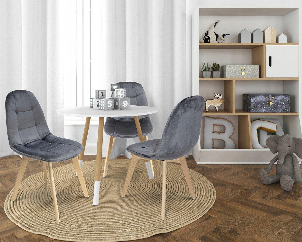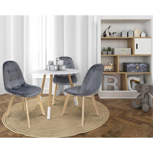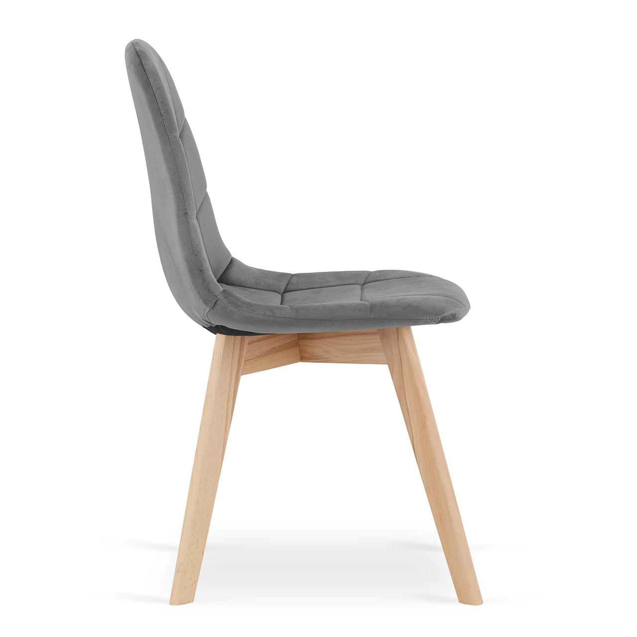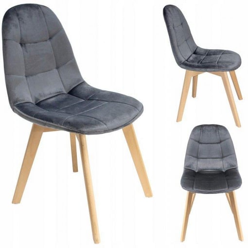 Имеет мягкое и крепкое сиденье, покрытое бархатом на ощупь. Он обшит толстым слоем наполнителя, а его спинка отличается удобным профилированием, идеально поддерживающим спину. Деревянные ножки из светлого бука обеспечивают стойкость и долговечность.
