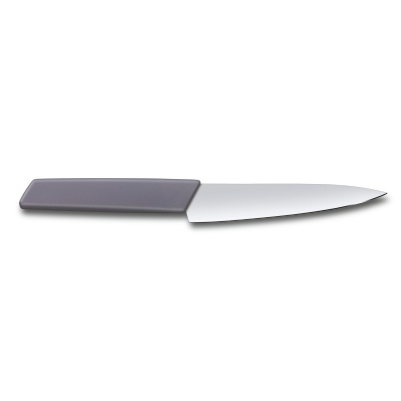 Современный нож с острым лезвием длиной 15 см отлично подходит для выполнения различных задач, таких как очистка от кожуры, нарезка и разделка. В обновлённой коллекции Swiss Modern традиционная деревянная рукоять из древесины ореха была заменена на модную синтетическую ручку. Легко чистить и мыть в посудомоечной машине, что делает его идеальным ножом для повседневного использования.