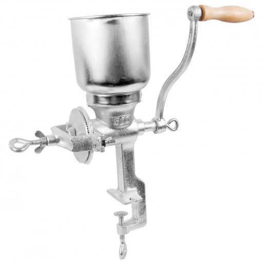 Мельница Browin для зерна ручная 15 х 13 х 42 см Отличная классическая металлическая мельница с деревянной ручкой, идеально подойдёт для переработки небольшого количества круп или зерна, в домашних условиях. Характеристики: Материал: чугун Материал дополнений: сталь (чаша), чугун с деревом (ручка). Комплектация: мельница, крепление, ручка (25 см), чаша(Ø13 см), зажим, нескользящая прокладка Размер: 15*13*42 см. Ёмкость бункера: 1,5 л Привод: механический, ручной Способ установки: настольная Упаковка: цветная картонная коробка Уход: после использования помыть и высушить собирать в сухом виде