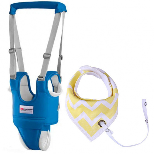 Набор 2Life детские вожжи-ходунки Синие и слюнявчик-нагрудник с держателем для соски Белый с желтым (v-11707)