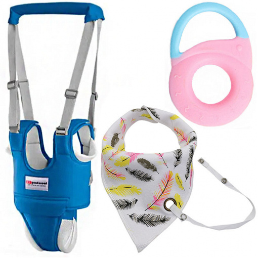 Набор 2Life вожжи-ходунки Синий слюнявчик-нагрудник с держателем Белый и прорезыватель Замочек Y4 Розовый (v-11710)