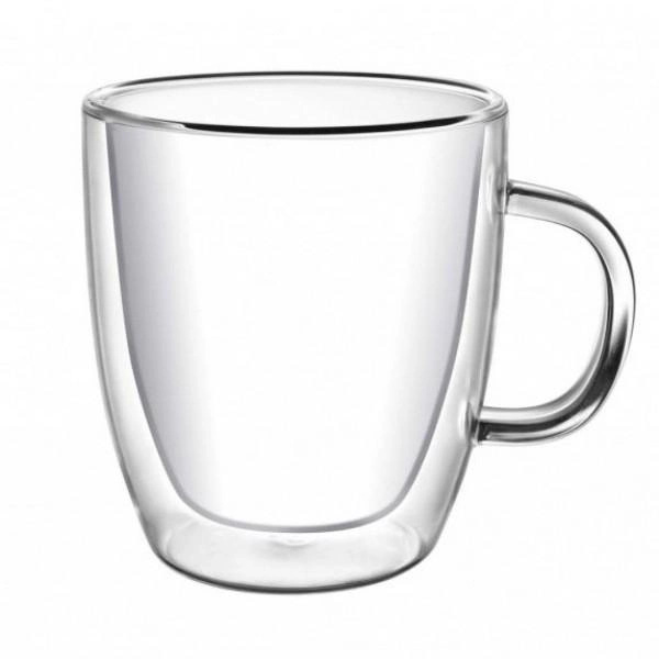 Благодаря конструкции с двойными стенками чашки не нагреваются снаружи и создается тепловой эффект и температура напитка сохраняется более долгое время.