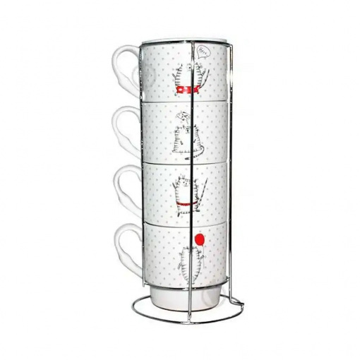 Набор чашек Cat story (4х320 мл) на металлической стойке от торговой марки S&T идеально подходит для повседневного использования. Чашки изготовлены из экологически чистого, качественного фарфора белого цвета с рисунками кошек.