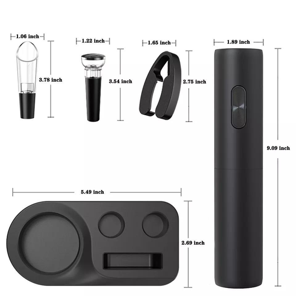 Набор для вина 5 в 1 – элегантное решение для настоящих ценителей.Этот набор для вина 5 в 1 является незаменимым аксессуаром для тех, кто ценит вино и хочет сделать его открытие, дегустацию и хранение максимально комфортным и стильным. В комплект входят электрический штопор на батарейках, аэратор для вина, пробка для хранения, чем для фольги и подставка для организации всех инструментов. Этот набор станет отличным дополнением к любому домашнему бару или изысканным подарком для любителей вина.Основные характеристики:Электрический штопор на батарейках: Легко и быстро открывает бутылки вина без усилий. Просто нажмите кнопку, и пробка будет извлечена автоматически, что значительно экономит время.Аэратор для вина: Насыщает вино кислородом, что позволяет раскрыть его ароматы и вкусовые нотки, улучшая вкусовые качества напитка.Пробка для хранения вина: Герметичная пробка обеспечивает свежесть вина после открытия, сохраняя его вкусовые свойства на более длительное время.Нож для фольги: Острый и удобный нож для быстрого и аккуратного удаления фольги из горлышка бутылки, что делает открытие бутылки проще.Подставка для хранения: Элегантная подставка, позволяющая удобно и аккуратно хранить все инструменты набора, поддерживая порядок и обеспечивая легкий доступ к каждому аксессуару. Комплектация набора 5 в 1: Электрический штопор (батарейки в комплект не входят)