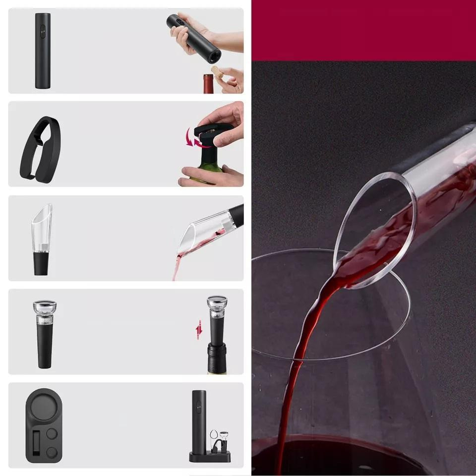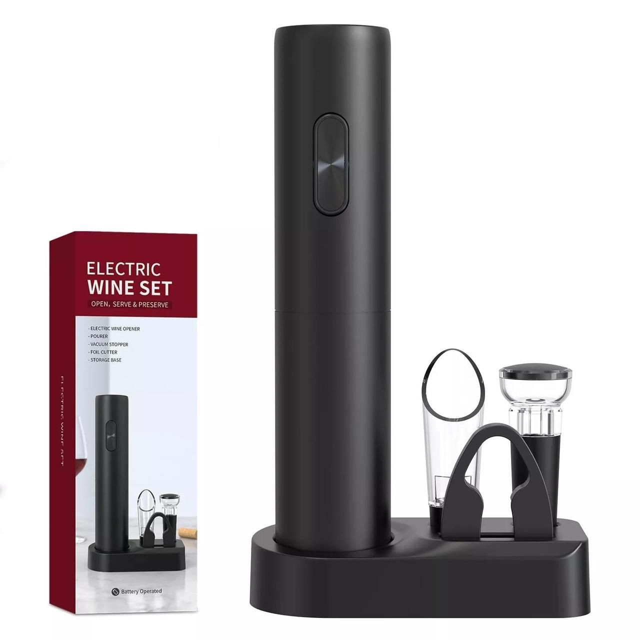 Электрический штопор на батарейках: Легко и быстро открывает бутылки вина без усилий. Просто нажмите кнопку, и пробка будет извлечена автоматически, что значительно экономит время.