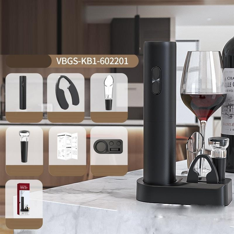 Набор для вина BAR 5в1 штопор на батарейках/аэратор/пробка/нож для фольги 5 прдметов Черный (C051397)