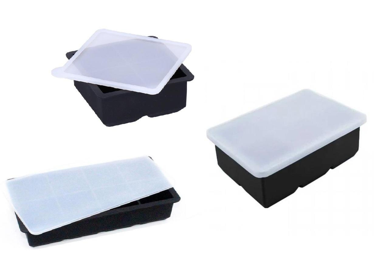Набор форм для льда 3 в 1 силиконовый Куб 4,6 и 8 ячеек с крышкой.