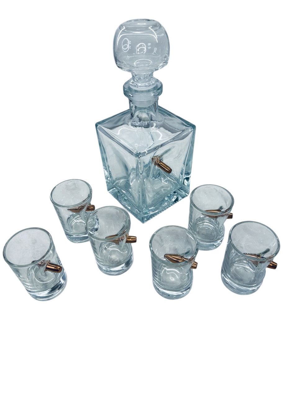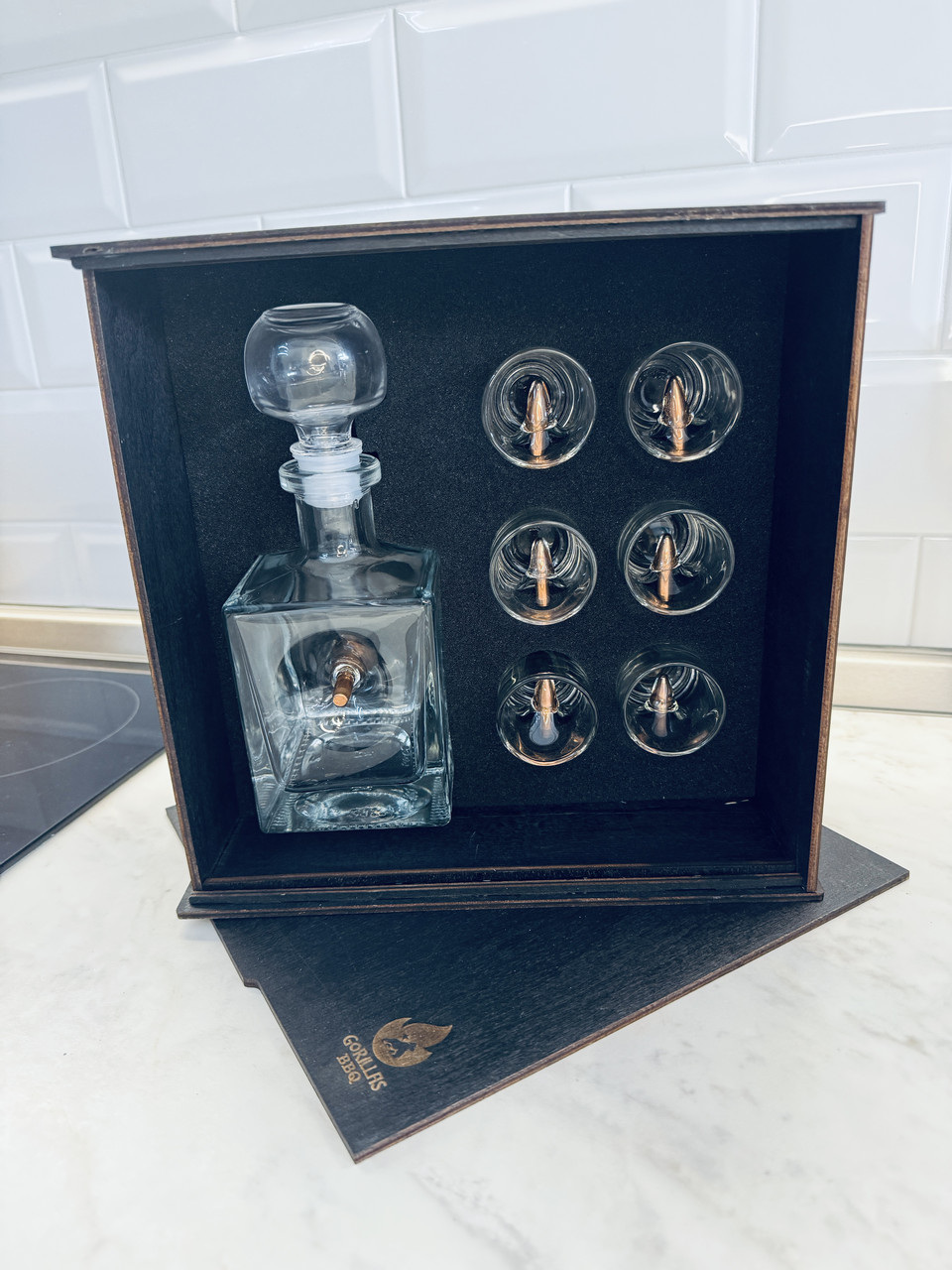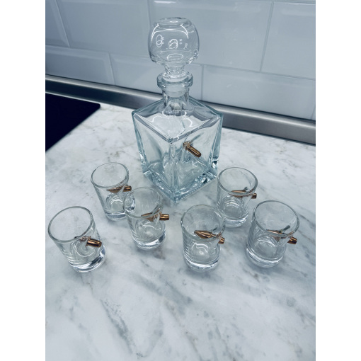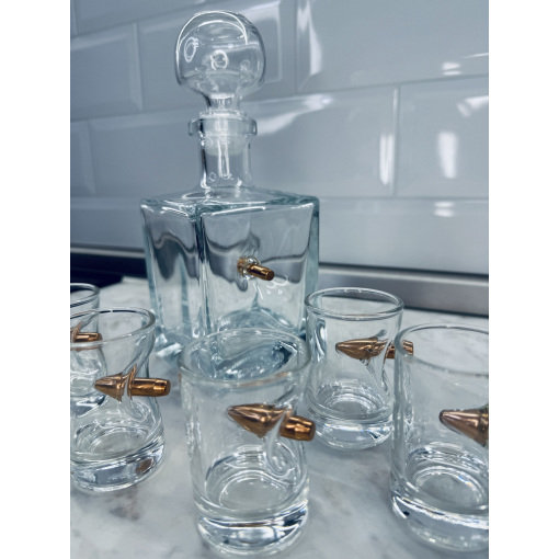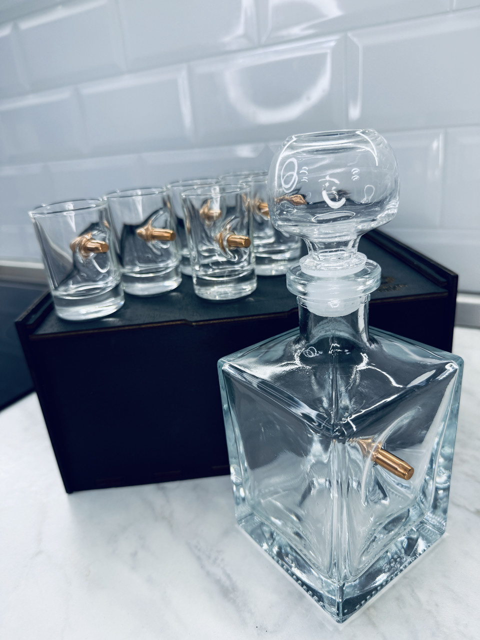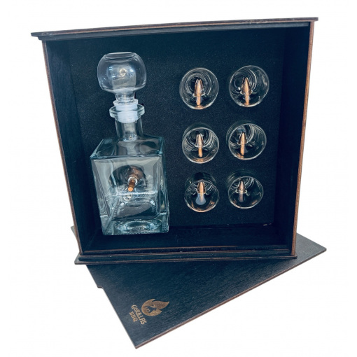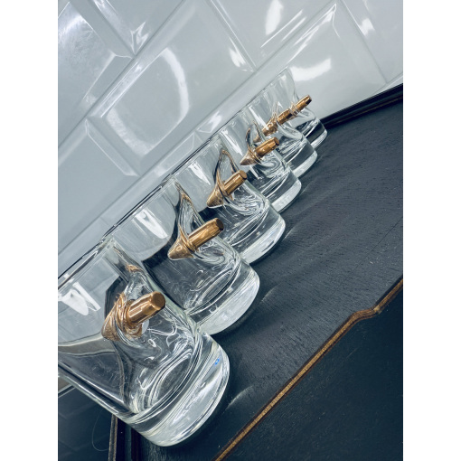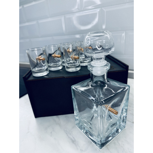 Этот оригинальный набор - стильный и необычный подарок, который впечатлит своим дизайном. Главная изюминка изделия - настоящая пуля, будто застрявшая в стекле. Этот эффект придаёт рюмке дерзкий и брутальный вид, символизируя решимость, силу и непоколебимость. Такой аксессуар станет отличным дополнением коллекции любителей оригинальной посуды и подчеркнёт характер своего обладателя.