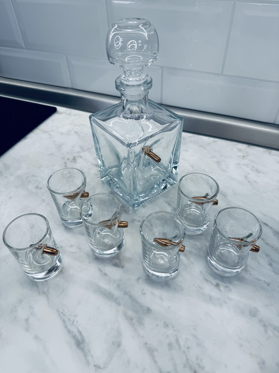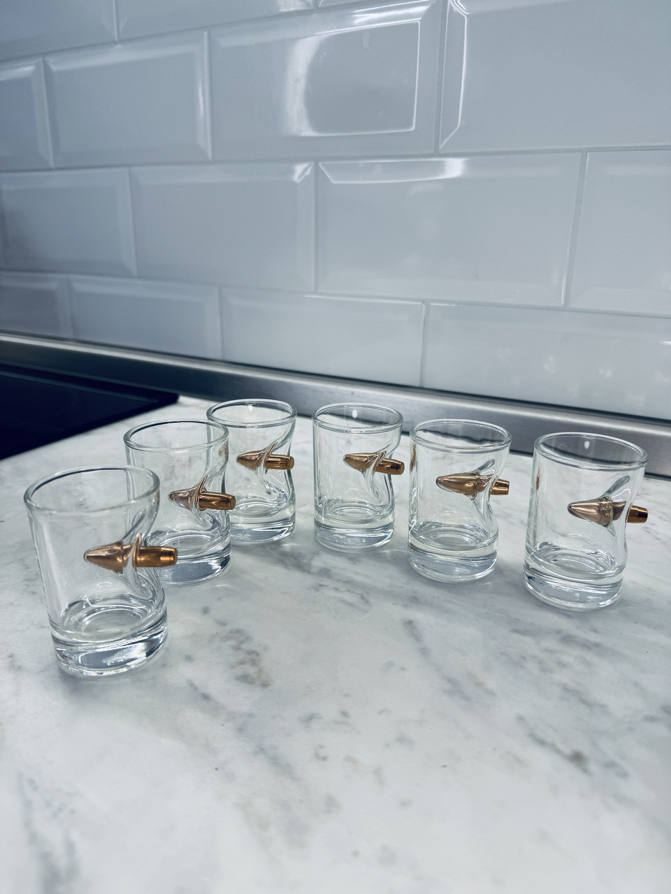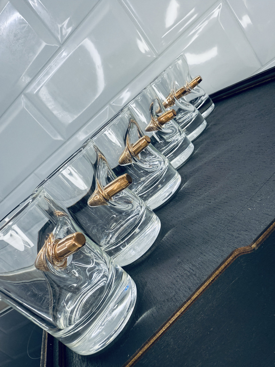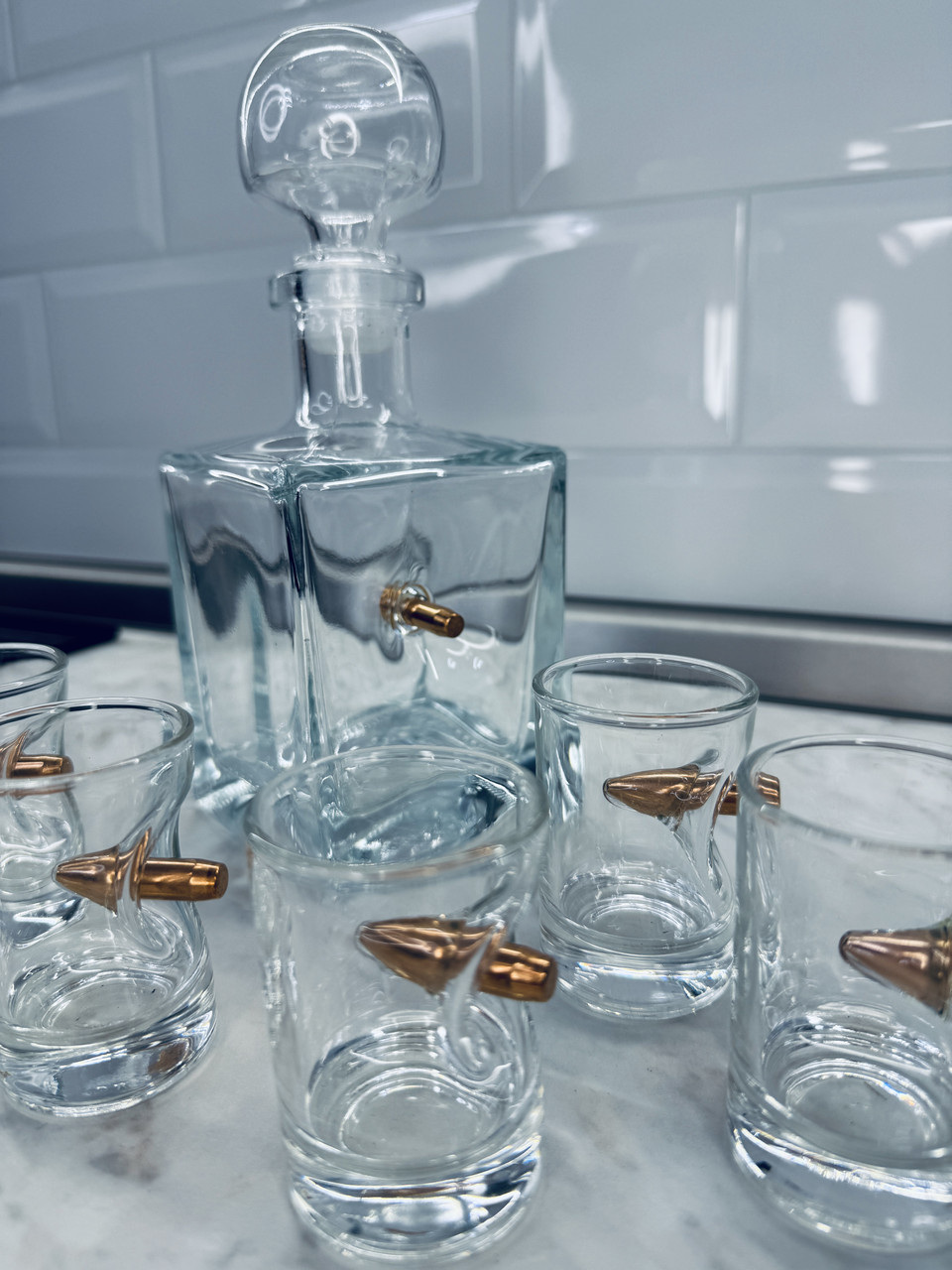 Этот оригинальный набор - стильный и необычный подарок, который впечатлит своим дизайном. Главная изюминка изделия - настоящая пуля, будто застрявшая в стекле. Этот эффект придаёт рюмке дерзкий и брутальный вид, символизируя решимость, силу и непоколебимость. Такой аксессуар станет отличным дополнением коллекции любителей оригинальной посуды и подчеркнёт характер своего обладателя.