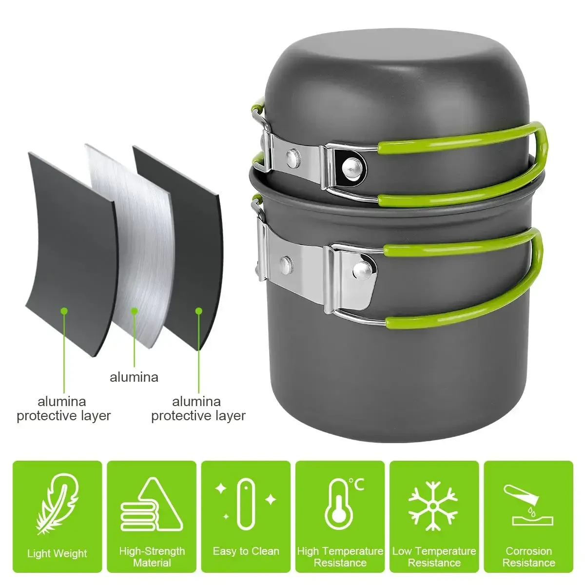 Набор посуды для кемпинга DS-101 с газовой печкой 12 предметов Серый Этот набор походной посуды подходит для пеших прогулок, походов, готовности к чрезвычайным ситуациям. А когда вы им не пользуетесь, он невероятно легко сохраняется благодаря компактному дизайну. Наш набор походных кастрюль быстро нагревается и легко чистится. Идеально подходит для кемпинга, пеших прогулок, пикников и других видов активного отдыха. В комплекте идет сетчатая сумка для удобного хранения и транспортировки. Складные ручки кастрюли и сковороды делают этот набор компактным и удобным для хранения. А измерительная шкала на кастрюле сэкономит ваше время и нервы. Технические характеристики: Материал: сплав АЛ, нержавеющая сталь; Толщина алюминиевого материала: 0,7мм; Цвет: Серый Размер упаковки: 17*12,7*12,5 см Вес с упаковкой: около 700 г Общий вес без упаковки около 570 гр. Особенности: Котелок изготовлен из анодированного алюминия. Устойчивость к высоким температурам, стойкость к трению. Подходит для использования как в помещении, так и на улице. Комплект: 1 х Большой горшок(12,2*10,5 см); 1 х маленький горшок(11,5*6 см); 1 х сумочка для хранения посуды; 1 х Котелок с крышкой (Объем 0,8 литра); 1 х Набор из складных ложки(160*40 мм), вилки(160*12 мм), ножа(165*12 мм); 3 х Пластиковая тарелка; 1 х Складной мини-черпак; 1 х Деревянная ложка; 1 х Губка для мытья; 1 х Газовая горелка (8,5*9,5см) складывается в пластиковом футляре мощностью 1500Вт под резьбовые баллоны; 1 х Карабин(7,5*4см); 1 х упаковочная коробка; Все помещается в котелок; Размер сложенного котелка 15см высотой, 13см диаметр.