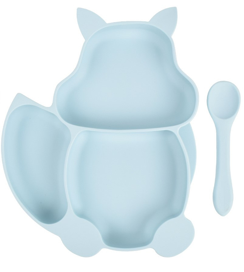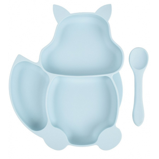 Набор силиконовая трех-секционная тарелка в форме белки ложка 2Life Y5 2 шт Голубой (n-10004)