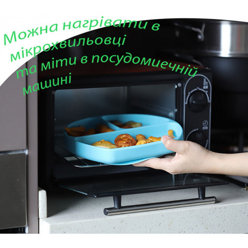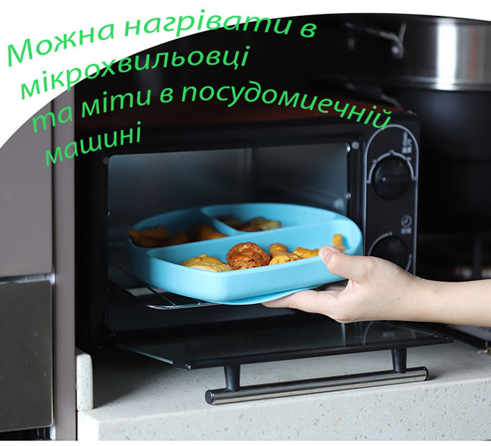 6.Силиконовая тарелка секционная снабжена присоской, что обеспечивает устойчивость посуды на столике для кормления или на любой другой гладкой и чистой поверхности.