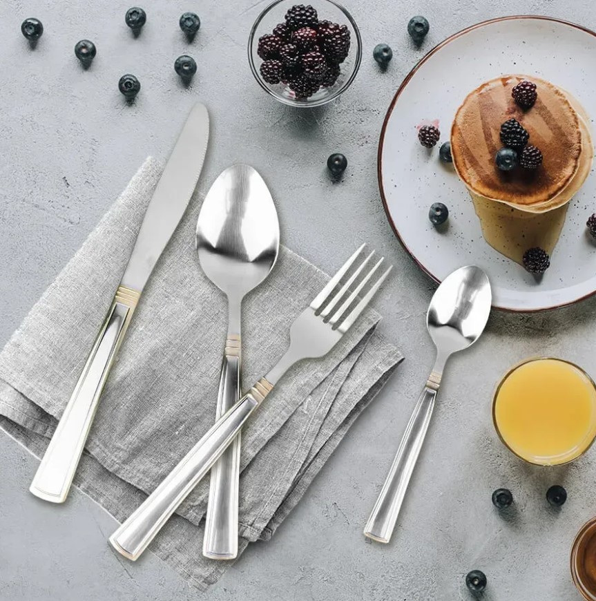 Набор столовых приборов Maestro Basic MR1523G изготовлен из высококачественной нержавеющей стали, что гарантирует прочность, устойчивость к деформациям и долговечность. Благодаря зеркальной полировке приборы обладают элегантным блеском и не влияют на вкус пищи. Эргономичный дизайн обеспечивает комфортное использование, а возможность мытья в посудомоечной машине значительно облегчает уход за набором.