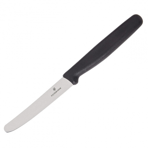 Швейцарский нож для стейка Victorinox Standard Table 5.1303. Замечательно справится с аккуратной и быстрой нарезкой блюд из мяса: стейков, отбивных, бифштексов. Универсальный дизайн этого кухонного инструмента будет также актуален в качестве столового прибора при сервировке. Закругленная форма кончика идеально подходит для намазывания кремообразных продуктов, таких как сливочное масло, джем или мед.