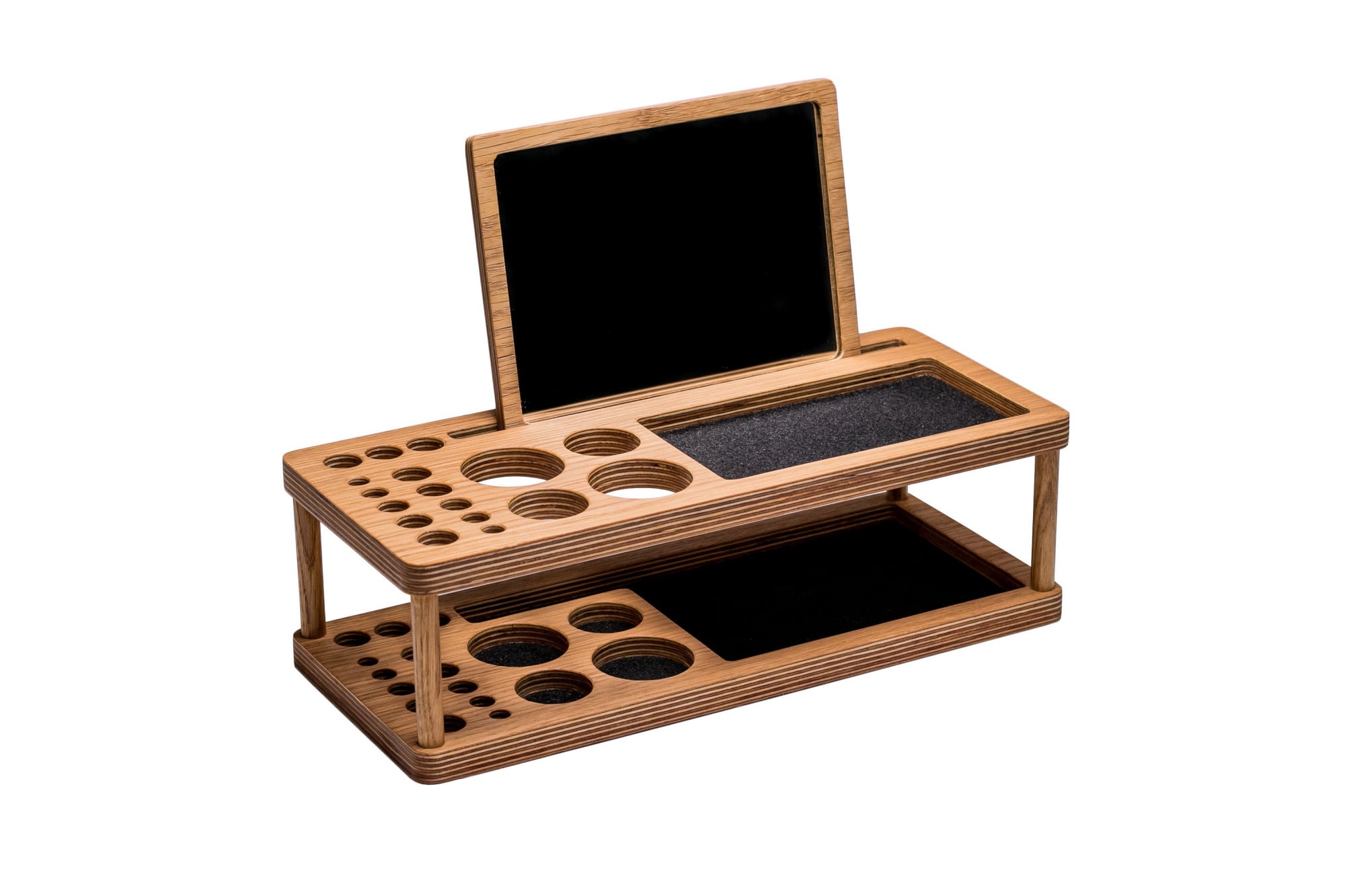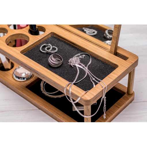 Органайзер для косметики - це корисна та стильна річ, за допомогою якої дівчата всього світу зберігають своє косметичне приладдя для створення краси. Незліченна кількість баночок, тюбиків і мініатюрних пензликів - все має мешкати в надійному затишному містечку, де дитина чи кішечка нічого точно не дістане і, водночас, усе лежатиме на своєму місці. До того ж із огляду на ритм сучасного життя необхідно мати все необхідне прямо під рукою. Ми впевнені – Ви помістите туди абсолютно все, що Вам заманеться. У паз вставляється дзеркало для Вашої зручності, яке йде в комплекті. За потреби туди можна ставити планшет для використання гаджета як дзеркала, щоб оперативно ділитися Вашою посмішкою у Instagram.