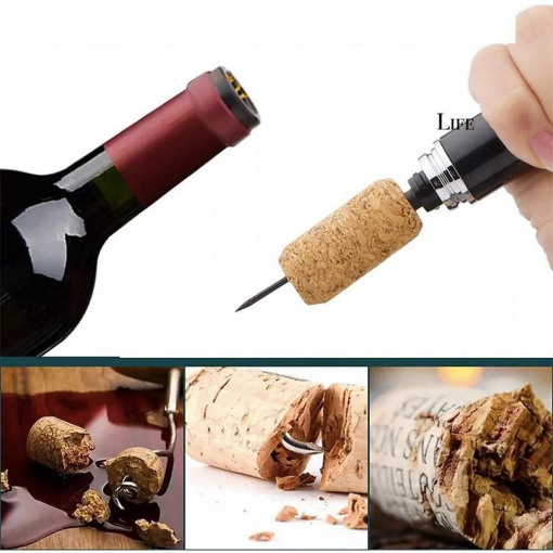 Пневматический штопор для бутылок с насосом и резаком для фольгиЭтот пневматический штопор является идеальным инструментом для быстрого и эффективного открывания бутылок с вином, шампанским и другими напитками. Благодаря встроенному воздушному насосу, устройство создает необходимое давление, что позволяет без труда вытащить пробку, не повреждая ее. Кроме того, штопор оснащен специальным резаком для фольги, обеспечивающим удобное и аккуратное удаление обертки из горлышка бутылки перед открытием. Это надежный аксессуар, который пригодится как профессионалам, так и любителям вина.Основные преимущества:Пневматический принцип работы: с помощью воздушного насоса создается давление, позволяющее эффективно извлечь пробку без повреждений и с минимальными усилиями.Резак для фольги: удобный резак помогает быстро и аккуратно снять фольгу с горлышка бутылки, обеспечивая чистоту и удобство при открывании.Удобство использования: интуитивно понятный механизм, позволяющий без труда открыть бутылку.Прочные материалы: изготовлены из высококачественных материалов, обеспечивающих надежность и долговечность инструмента.