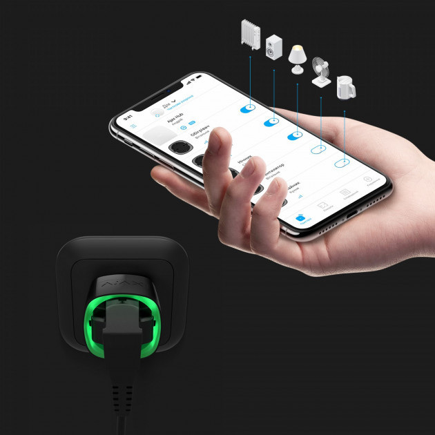 Socket включает и отключает подачу питания по сценариям, либо команде пользователя охранной системы через приложение Ajax. С помощью Socket можно управлять техникой дистанционно: включать и выключать освещение, запускать бытовые приборы и климатическую технику, автоматически прекращать подачу питания на электроприборы при постановке или снятии системы безопасности Ajax с охраны.