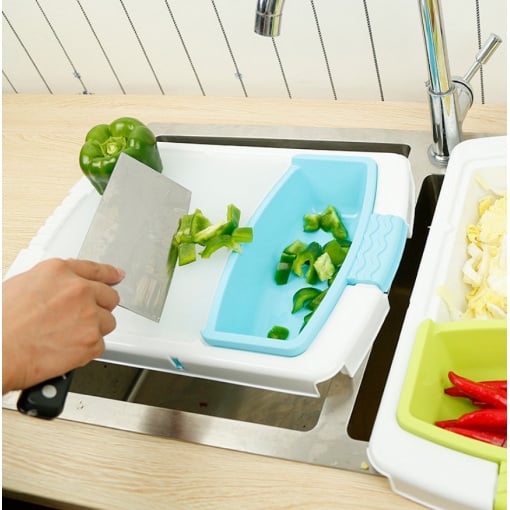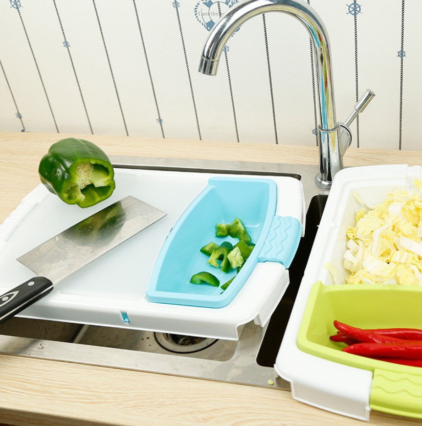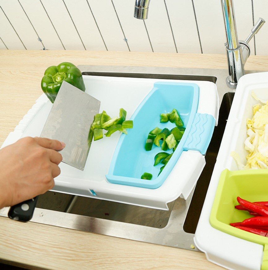 Складная кухонная разделочная доска — это универсальное и функциональное решение для экономии пространства на кухне. Идеально подходит для небольших рабочих поверхностей и эффективно совмещает в себе функции разделочной доски, лотка для мытья и хранения продуктов.
