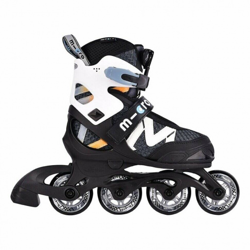 Micro Shaper - Легкі дихаючі ролики з регульованим розміром для дітей та підлітків. Оновлена модель виконана в сучасному дизайні та стильних кольорах. Ролики відмінно підходять райдерам-початківцям. Міцна поліпропіленова основа не деформується та підтримує ногу знизу. Напівм'який черевик виконаний з урахуванням анатомії дитячої стопи, не здавлює і не натирає гомілковостоп. Сітчастий вентильований матеріал добре пропускає повітря та виводить вологу назовні. Система швидкого застіблення складається з баклі з додатковими замками і ременя п'яти, з якими легко впораються самостійно навіть найменші діти. Разом з манжетою з поліпропілену система забезпечує відмінну підтримку та надійно фіксує ногу. Черевик регулюється не більше чотирьох розмірів, що дозволяє кілька роликів використовувати кілька років.