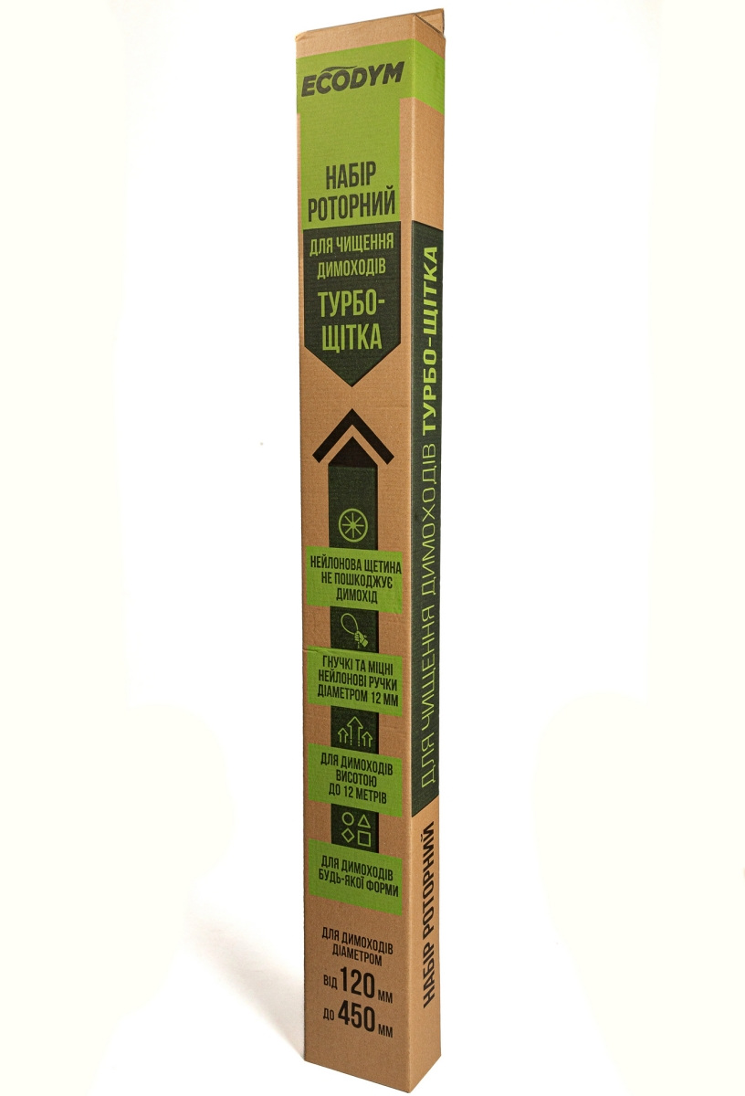 Роторный набор для чистки дымоходов Ecodym Турбо-Щетка (1 м x 7 шт) подходит как для профессионального, так и для домашнего использования. Это простой способ очистки дымохода от сажи с помощью электрической дрели или шуруповерта. Благодаря данному набору можно самостоятельно удалить сажу и пепел из внутренних стен дымоходных элементов без их повреждения.
