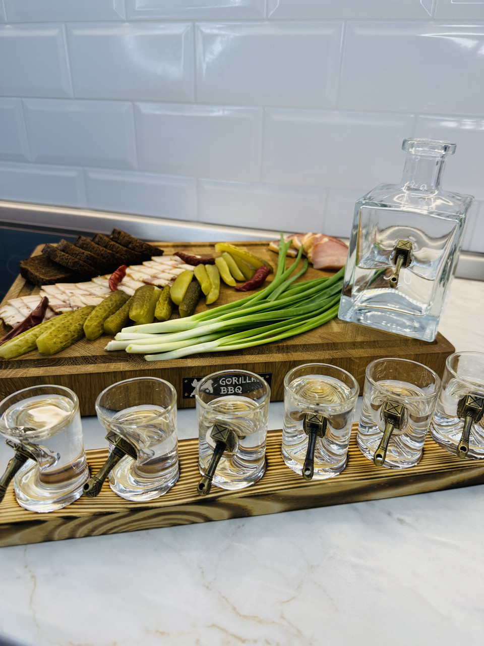 Рюмки с подставкой Gorillas BBQ Молот 50 мл Прозрачный 7 шт (GL10)