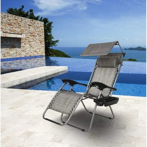Садовое кресло Шезлонг с козырьком до 120 кг Bonro SP-167A серый