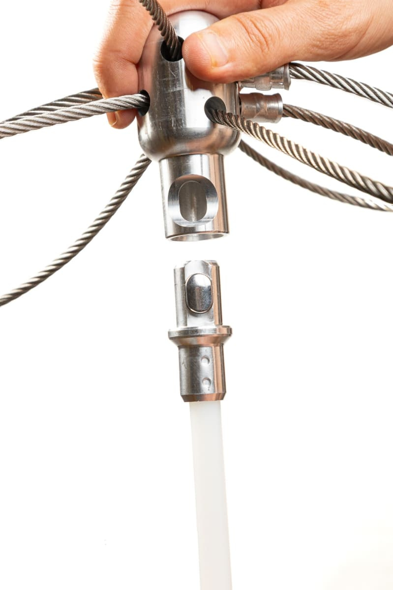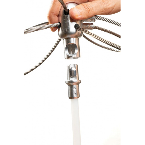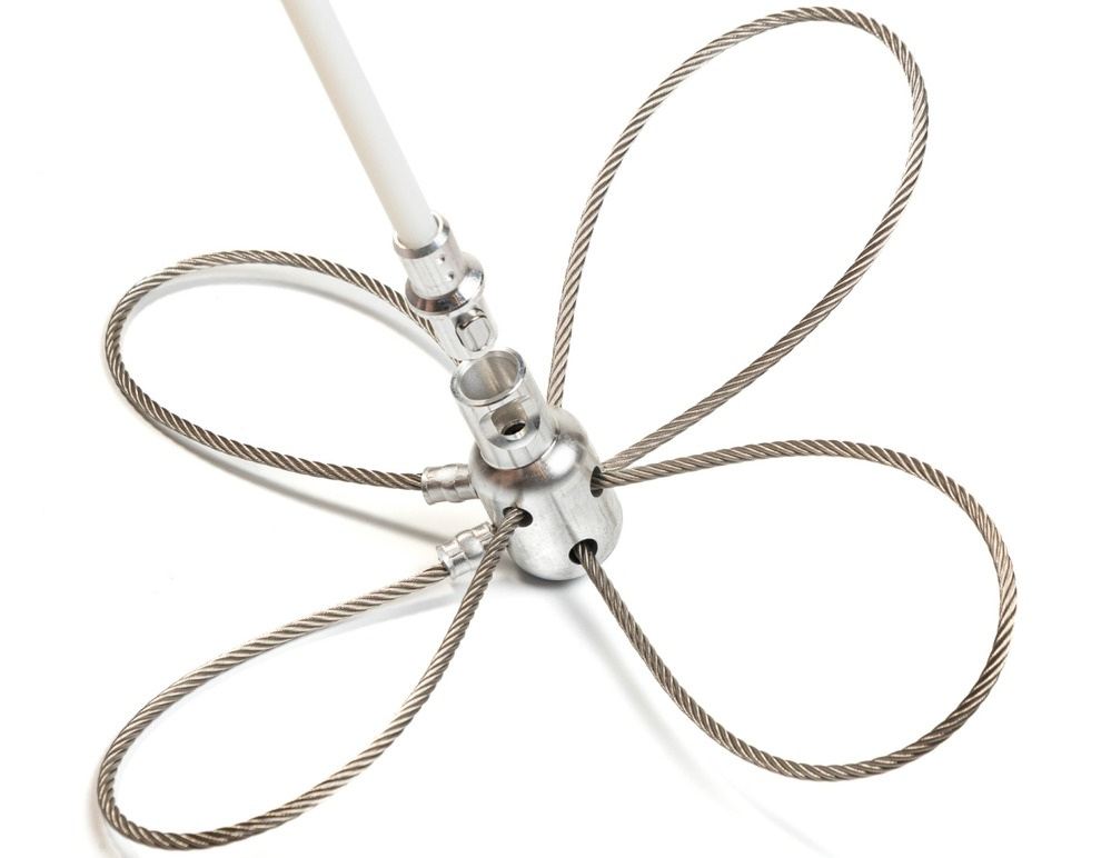 Щетка фиксируется с помощью быстроразъемного механизма к гибким нейлоновым ручкам, которые оборудованы удобным замком для пальцев. Это позволяет легко очищать каналы с изгибами до 90 градусов. Щетка подходит для очистки дымоходов разной формы – круглой, овальной, квадратной или прямоугольной – с диаметром от 100 до 350 мм.