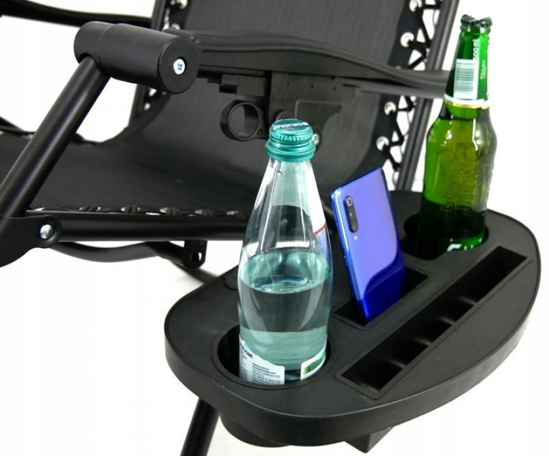 Шезлонг с полкой для напитков и, например, телефона – это долговечный продукт, идеально подходящий для использования в саду или на террасе.