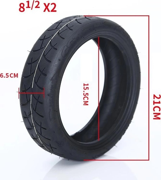 Прочная шина, специально разработанная для электросамоката Xiaomi Mijia M365 / Crosser / Like.bike / Kugoo m365 Шины сделаны из специального резинового материала с рифленой поверхностью, который в свою очередь обеспечивает отличное сцепление и длительную износостойкость. Характеристики шины: Модель: 8 1/2X2. Материал: резина. Внутренний диаметр: 154 мм / 6.1 дюйма. Внешний диаметр: 215 мм / 8.5 дюйма. Ширина: 50 мм / 2 дюйма. Комплектация: 1 - шина 1 - камера.