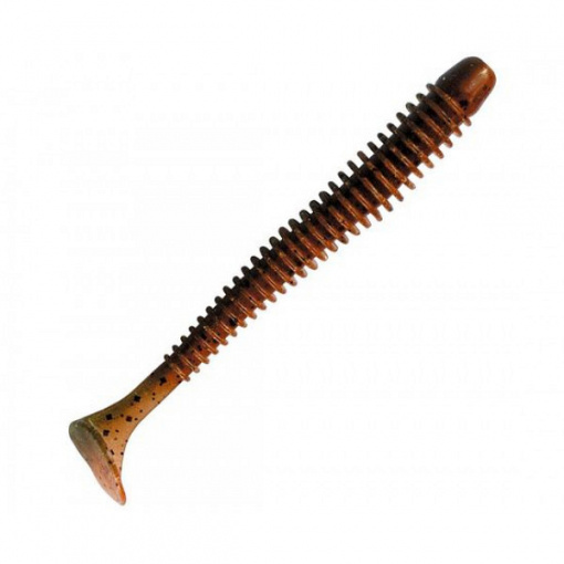 Пятка виброхвоста очень подвижная и включается в игру при самой медленной проводке. Ребристость на теле приманки создает дополнительные возмущения в водной среде, привлекающие хищника с большого расстояния.