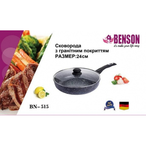 Сковорода с крышкой Benson BN-515 гранитное покрытие светлое 24 см