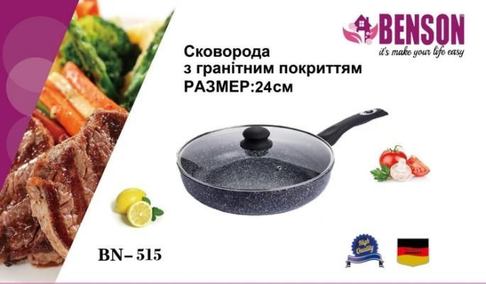 Подробные характеристики Сковорода с крышкой Benson BN-515 гранитное покрытие светлое 24 см.