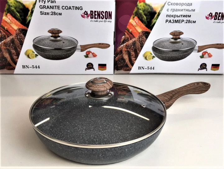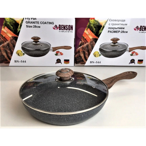 Подробные характеристики Сковорода с крышкой Benson BN-544 28 см Черный.