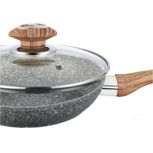 Сковорода с крышкой Benson BN-544 гранитное покрытие серое, 28 см
