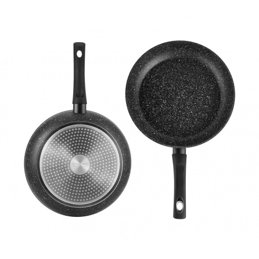 Эргономичная ручка не нагревается, приятно ложится в руку и обеспечивает удобную эксплуатацию. Корпус надёжный, он хорошо защищён от царапин и деформаций. После того, как еда будет готова, сковороду легко можно очистить самостоятельно под горячей водой. Пища не будет прилипать ко дну и стенкам при правильном использовании.