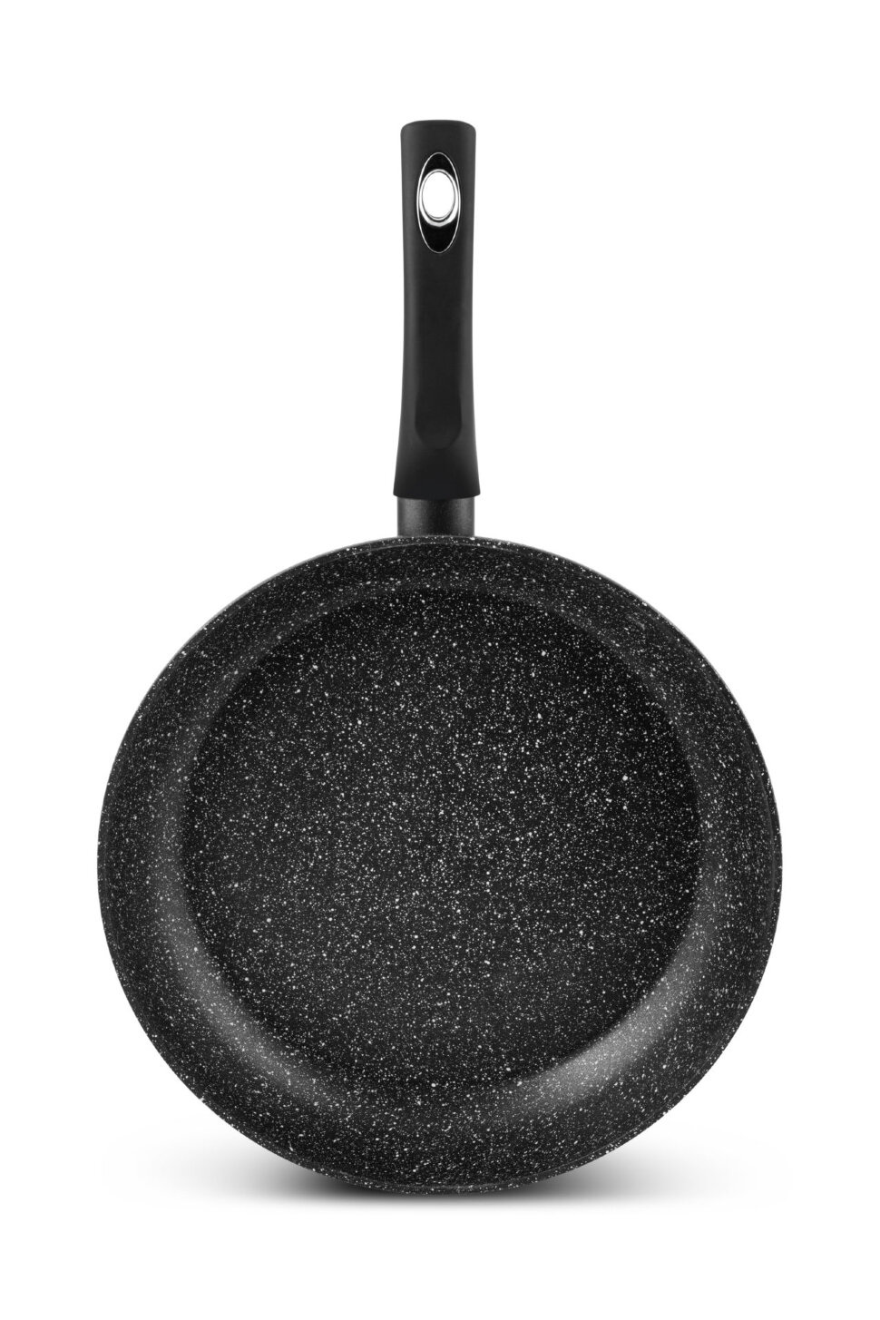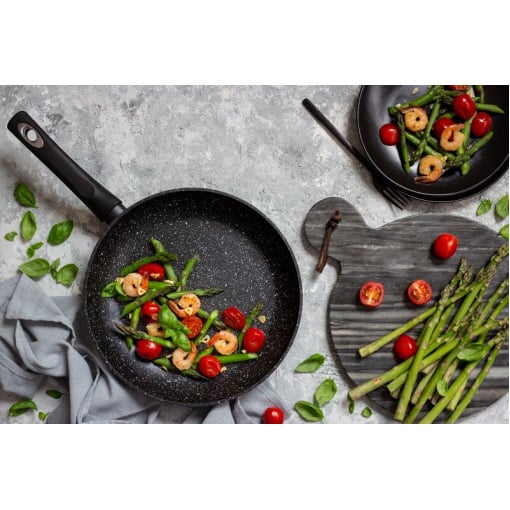 Эргономичная ручка не нагревается, приятно ложится в руку и обеспечивает удобную эксплуатацию. Корпус надёжный, он хорошо защищён от царапин и деформаций. После того, как еда будет готова, сковороду легко можно очистить самостоятельно под горячей водой. Пища не будет прилипать ко дну и стенкам при правильном использовании.