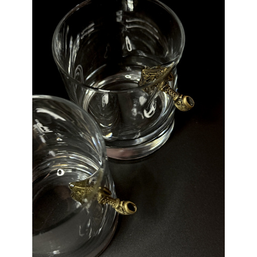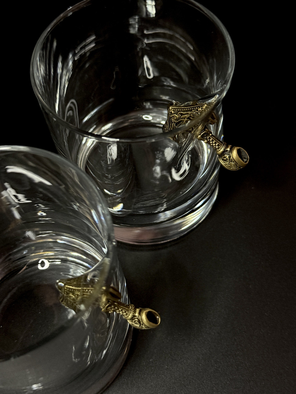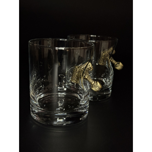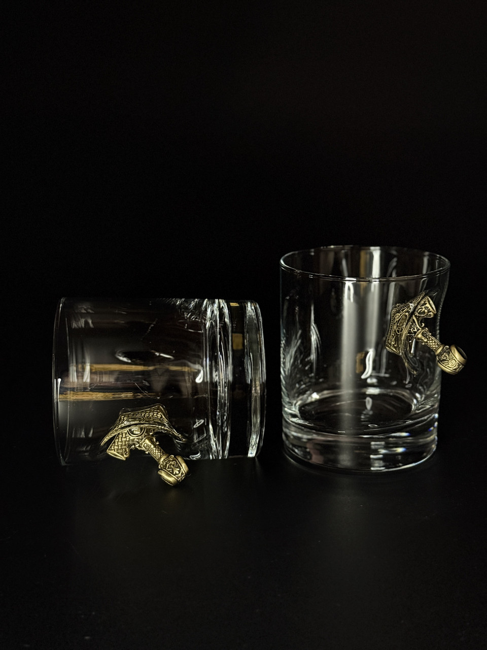 Изделие украшено изысканным металлическим элементом в виде молота Тора — символа силы и отваги в скандинавской мифологии. Каждый предмет выполнен из прочного стекла с объемной металлической вставкой, придающей изделию уникальный и брутальный внешний вид. Оригинальный дизайн делает набор не просто посудой, а настоящим предметом коллекции.